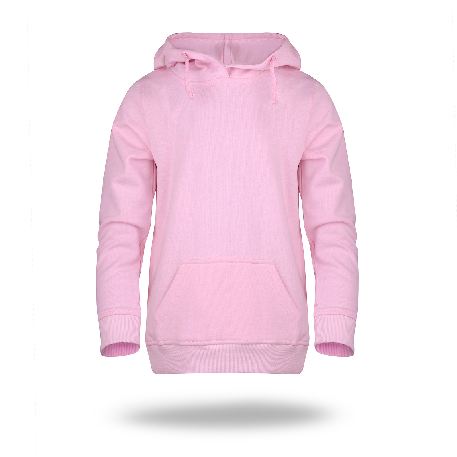 Dzianina szczotkowana od wewnątrz. Kieszeń typu "kangurek". Dwuwarstwowy kaptur z regulacją na sznurek. Elastyczne ściągacze. Podwójne szwy. Taśma wzmacniająca na karku i ramionach.