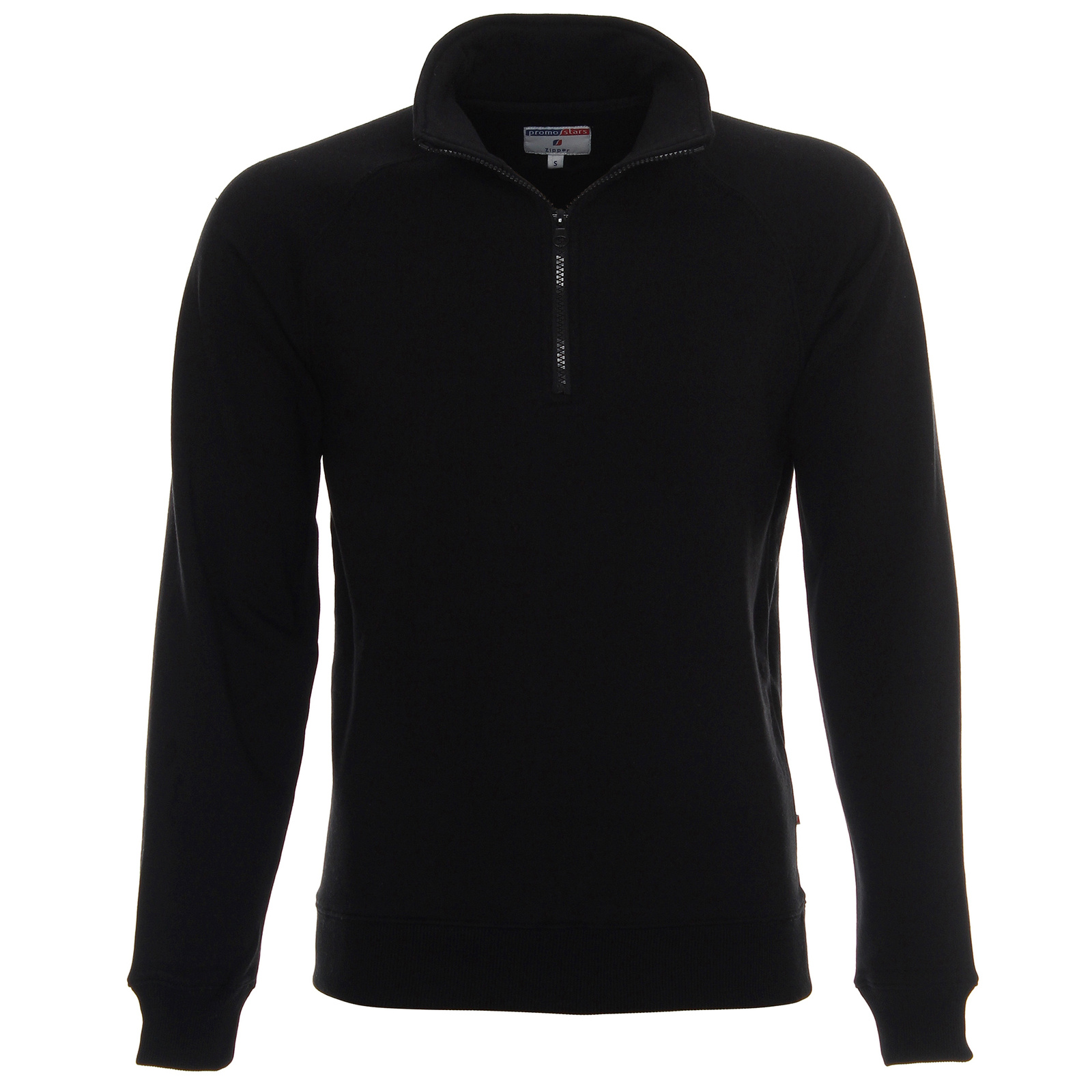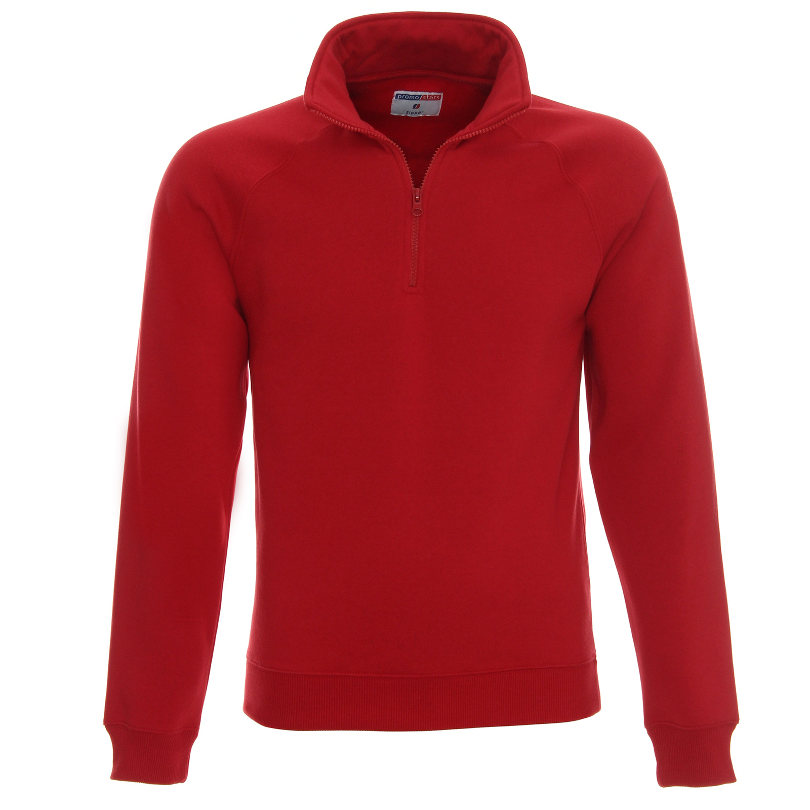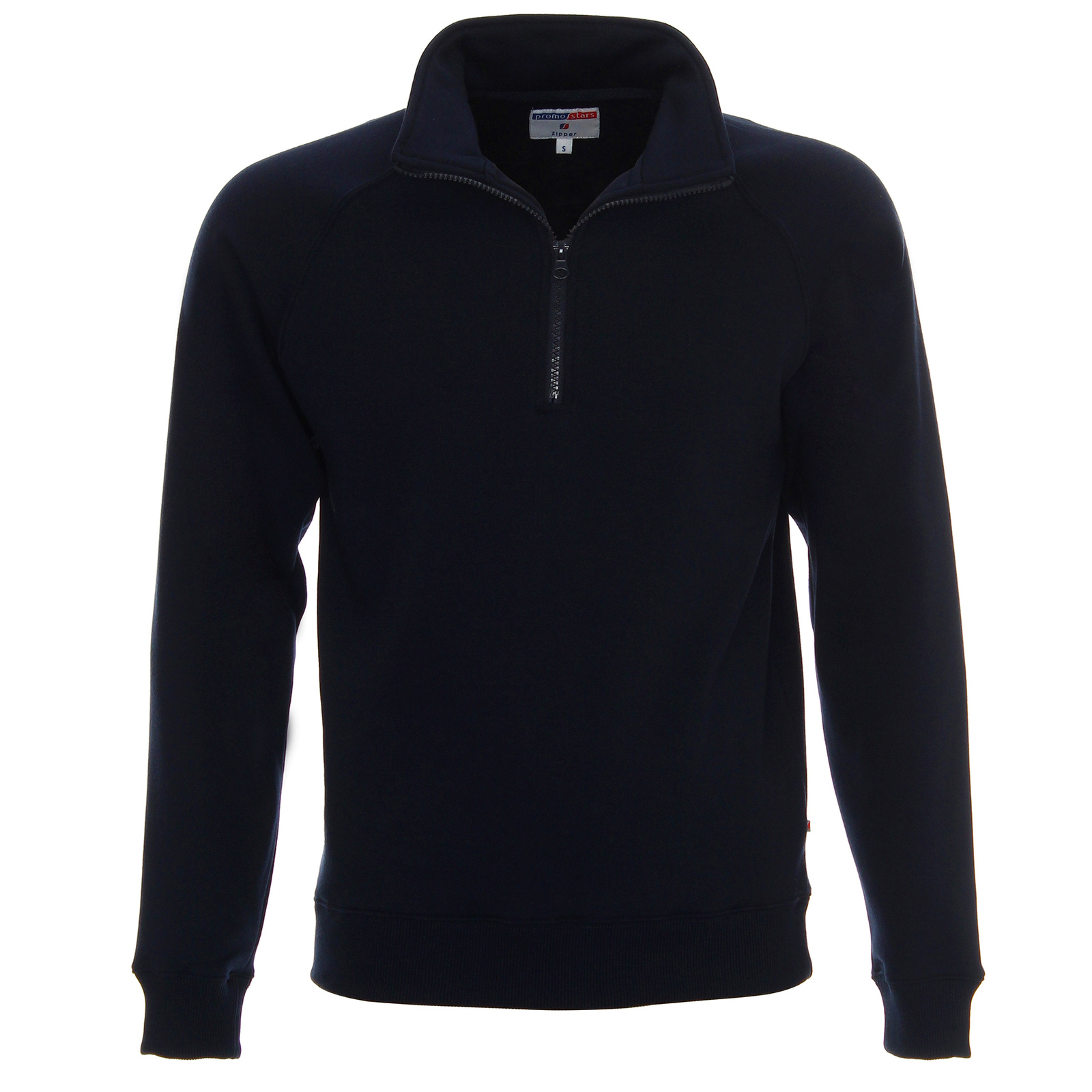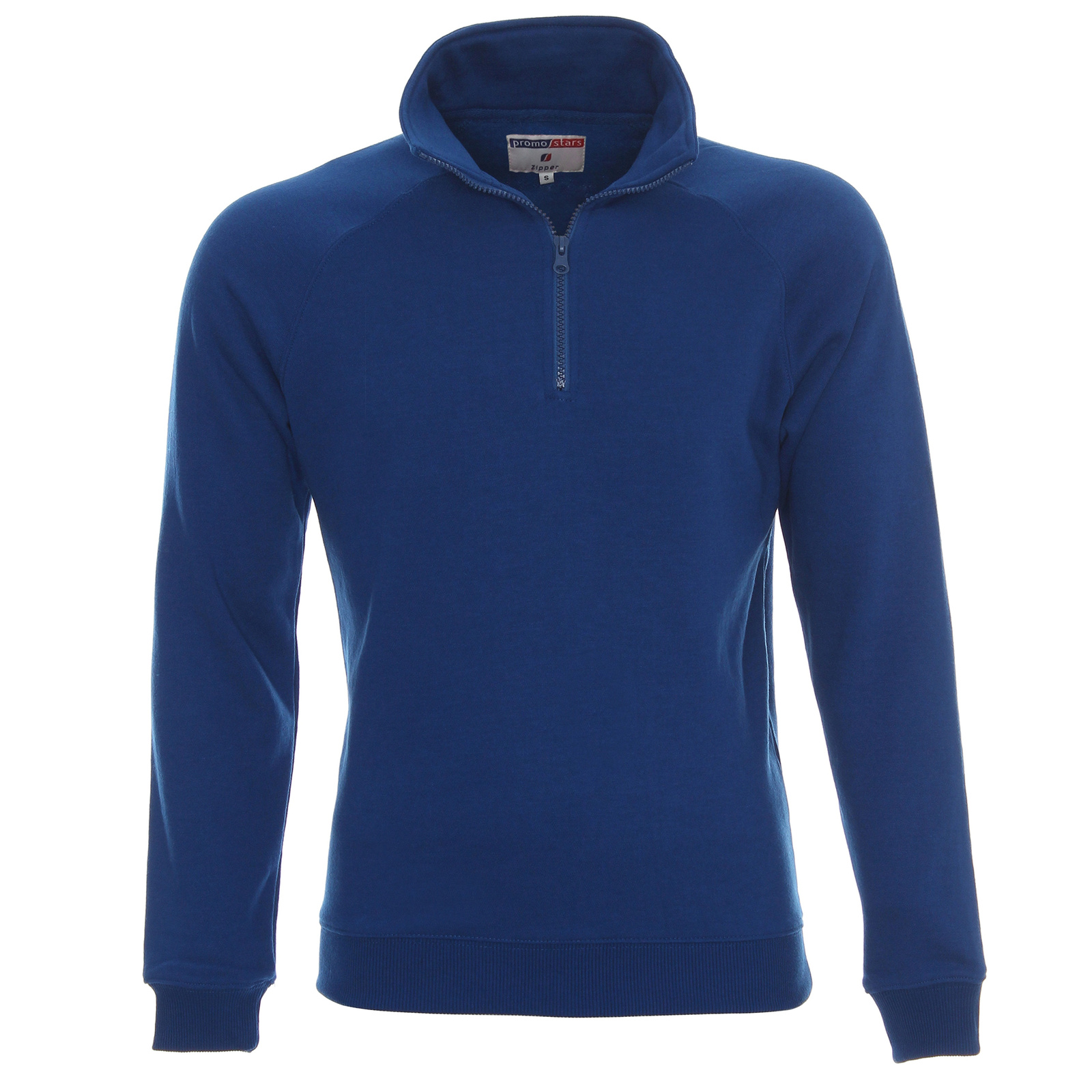 Gruby materiał od wewnątrz szczotkowany. Kołnierz ze stójką. Rozpięcie kołnierza na krótki plastikowy zamek kostkowy. Raglanowe rękawy. Rękawy oraz dół błuzy wykończone dwuwarstwowym ściągaczem z elastanem rib 2x2, zapewniającym dłuższą trwałość. Szyja i ramiona z taśmą wzmacniającą i stabilizującą, która pozytywnie wpływa na trwałość szwów. Podwójne, gęste szwy do których wykorzystano nici najwyższej jakości.