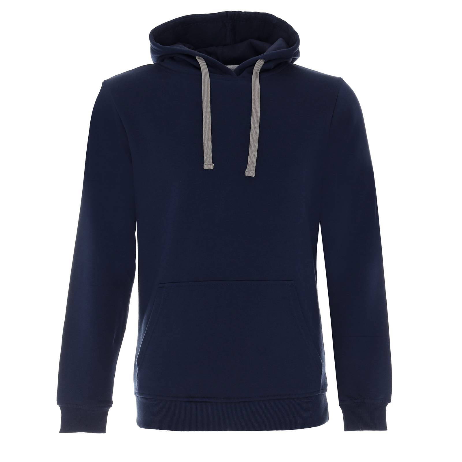 Materiał od wewnątrz szczotkowany. Kieszeń typu "kangurek". Kaptur wyścielony dzianiną single jersey. Regulacja kaptura kontrastowym szurkiem. Rękawy oraz dół błuzy wykończone dwuwarstwowym ściągaczem z elastanem rib 2x2, zapewniającym dłuższą trwałość. szyja i ramiona z taśmą wzmacniającą i stabilizującą, która pozytywnie wpływa na trwałość szwów. Podwójne, gęste szwy do których wykorzystano nici.