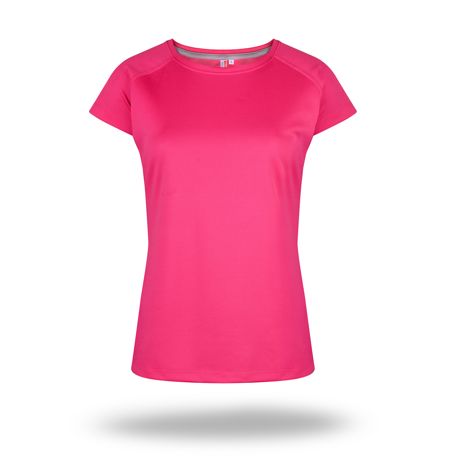 Taliowany fason. Lekko zaokrąglony, wydłużony tył. Oddychający, szybkoschnący materiał odprowadzający wilgoć. Dekolt wykończony 2-warstwowym ściągaczem z materiału głównego. Taśma wzmacniająca na karku w kontrastowym kolorze. Dekoracyjne przeszycia interlock. Boczne szwy, podwójne, gęste szwy do których wykorzystano nici najwyższej jakości. Odrywalna metka.