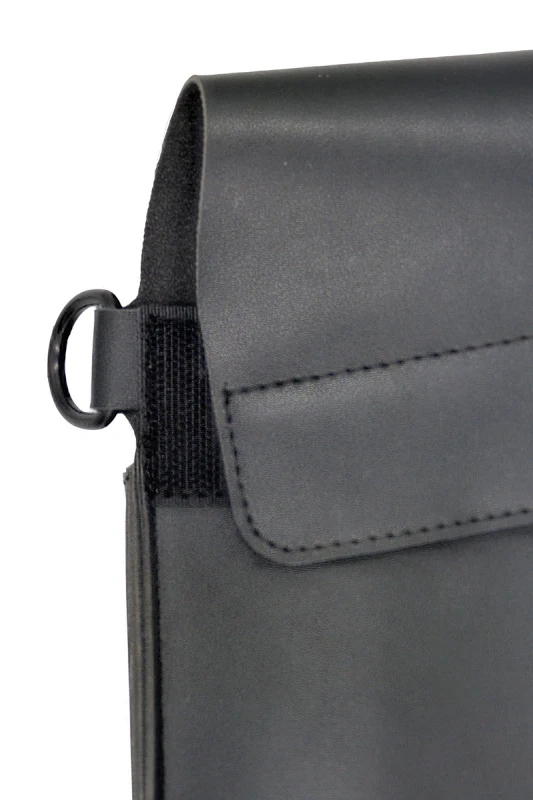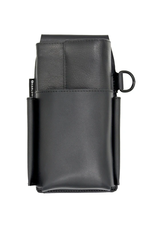 - 1 duża komora główna na mobilne systemy zamawiania lub czytniki kart. 2 oddzielne kieszenie na długopisy. Wytrzymałe oczko do mocowania kluczy, otwieraczy do butelek, breloków. praktyczna szlufka na pasek (6 cm) z zapięciem na rzep.