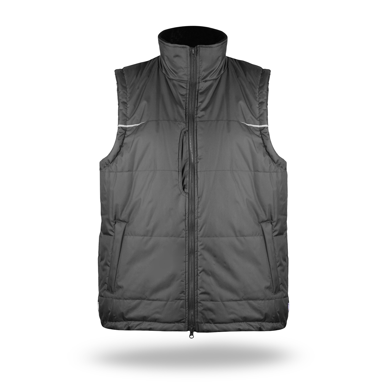 Stójka wyścielona polarem o gramaturze 250 g/m2. Wnętrze wyścielone podszewką. Dekoracyjne przeszycia. Elementy odblaskowe z przodu i z tyłu. Dwustronny, kostkowy zamek główny. Kieszenie zamykane na zamki nylonowe. Kieszeń na piersi z zakrywającą zakładką. Wewnątrz zamykana kieszeń na dokumenty. System ściągaczy u dołu wewnątrz. Dół rozpinany od wewnątrz na zamek umożliwiający dojście maszyny znakującej.