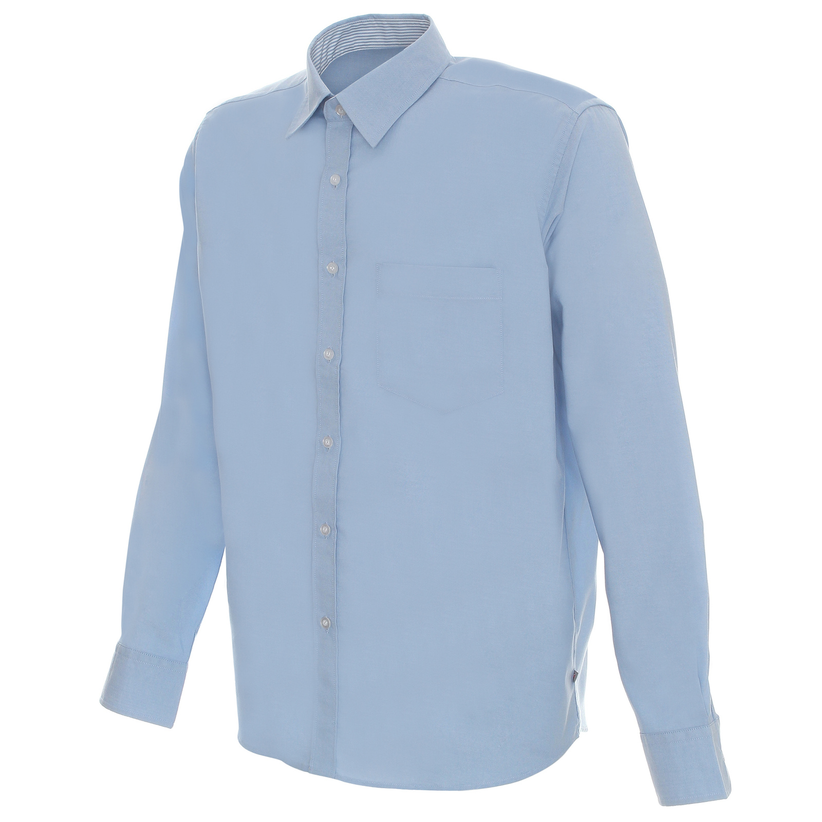 Klasyczny fason. Usztywniony kołnierzyk ze stójką. Kieszeń na piersi. Kołnierzyk i mankiety wykończone kontrastowym materiałem od wewnątrz.