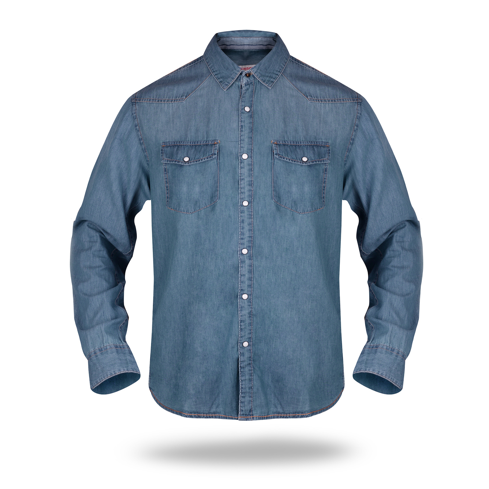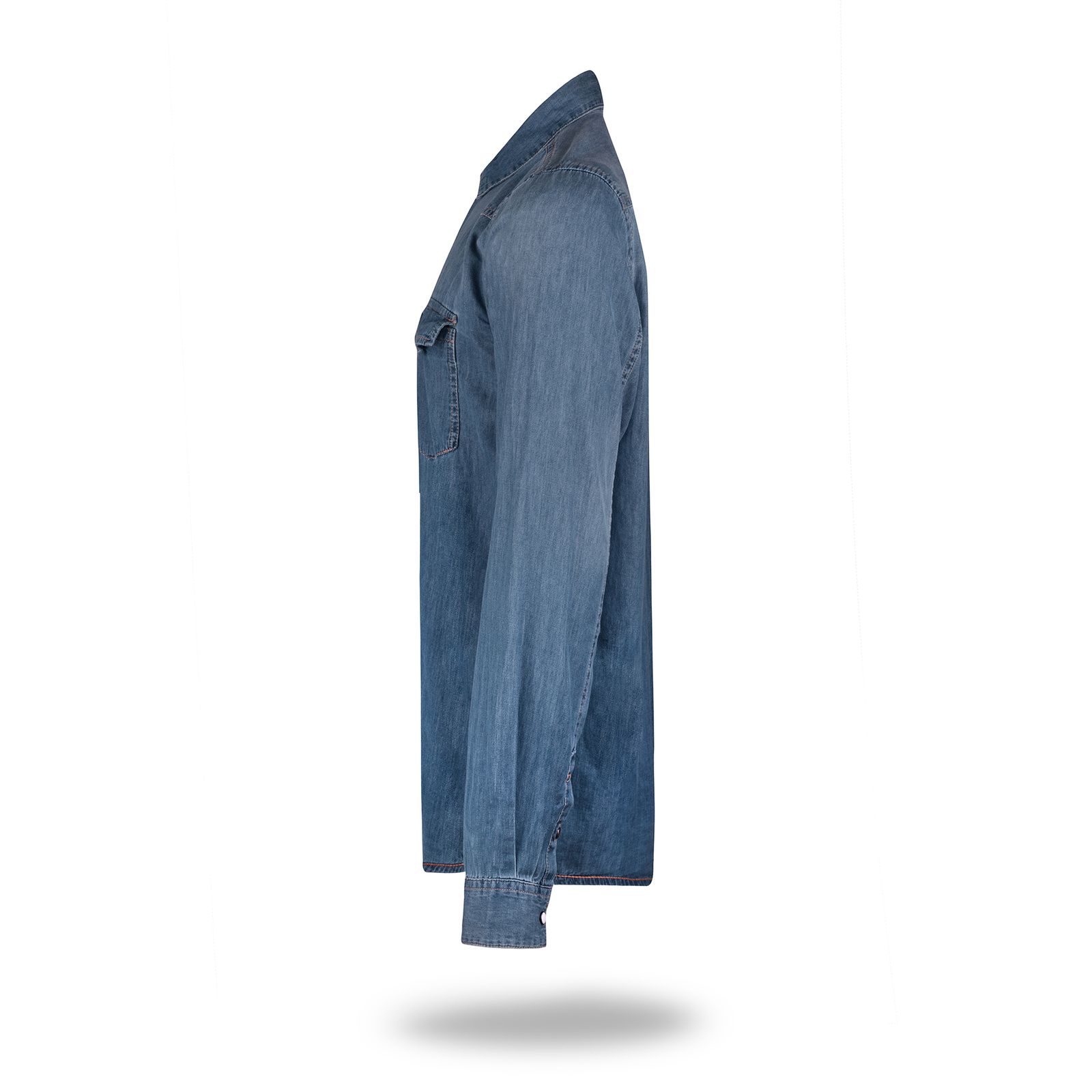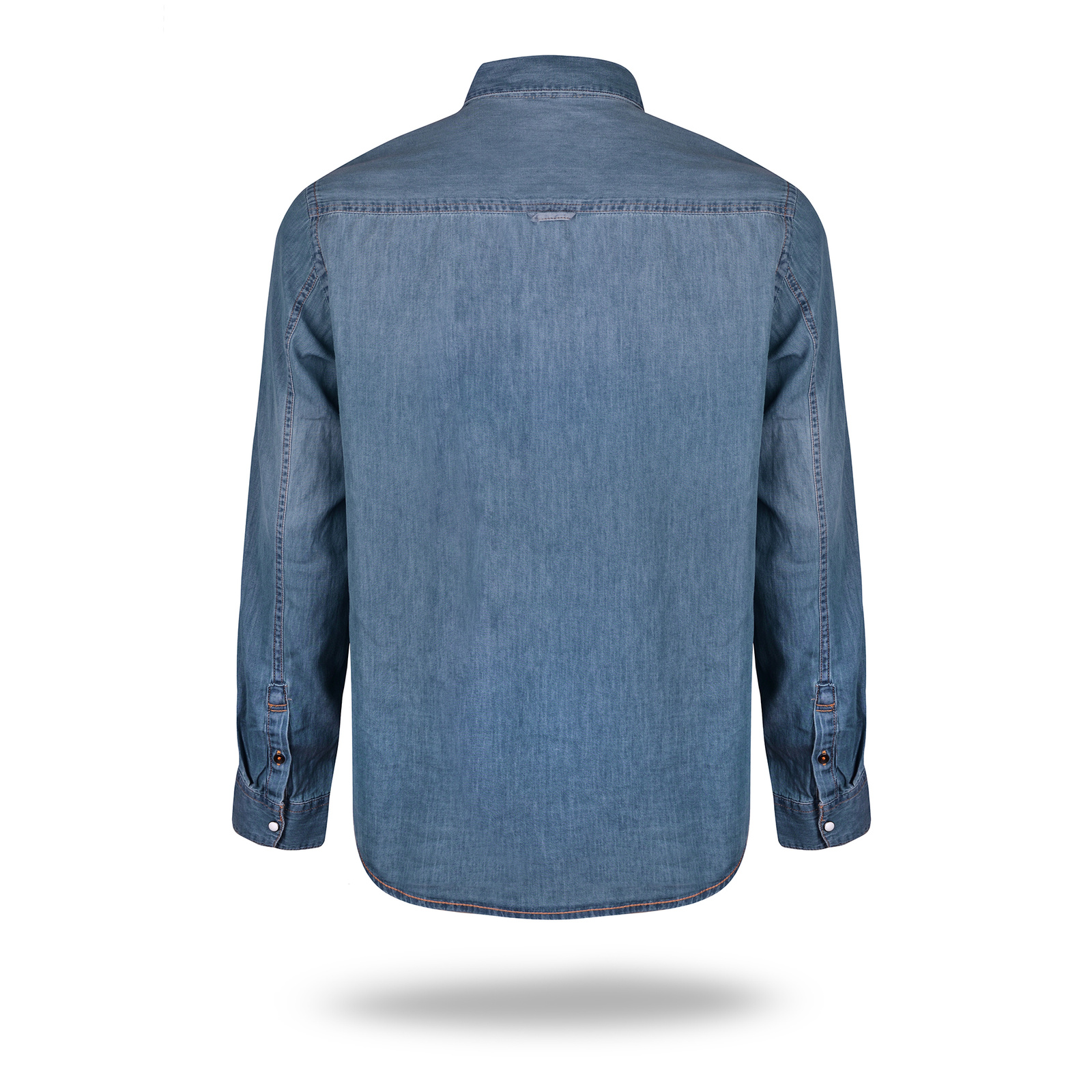 Klasyczny fason. Kołnierzyk ze stójką, dwie przednie kieszenie. Ozdobna taśma wewnątrz kołnierzyka. Metalowe zatrzaski z białym wypełnieniem. Dekoracyjne przeszycia.