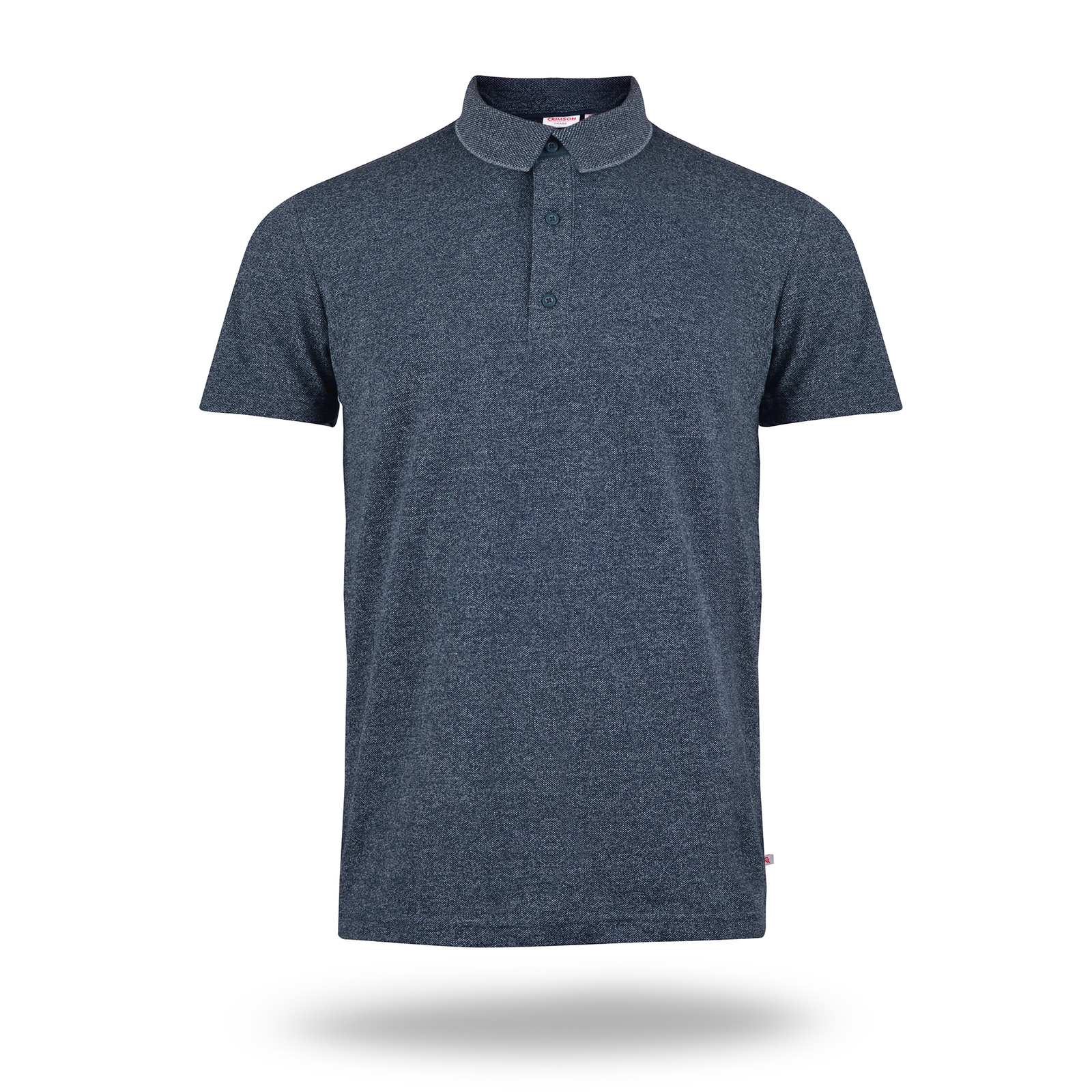 Dwukolorowa struktura materiału i kołnierzyka. Stójka i listwa z guzikami wykończona kontrastową tkaniną typu twill. Podwójne szwy. taśma wzmacniająca ramiona.