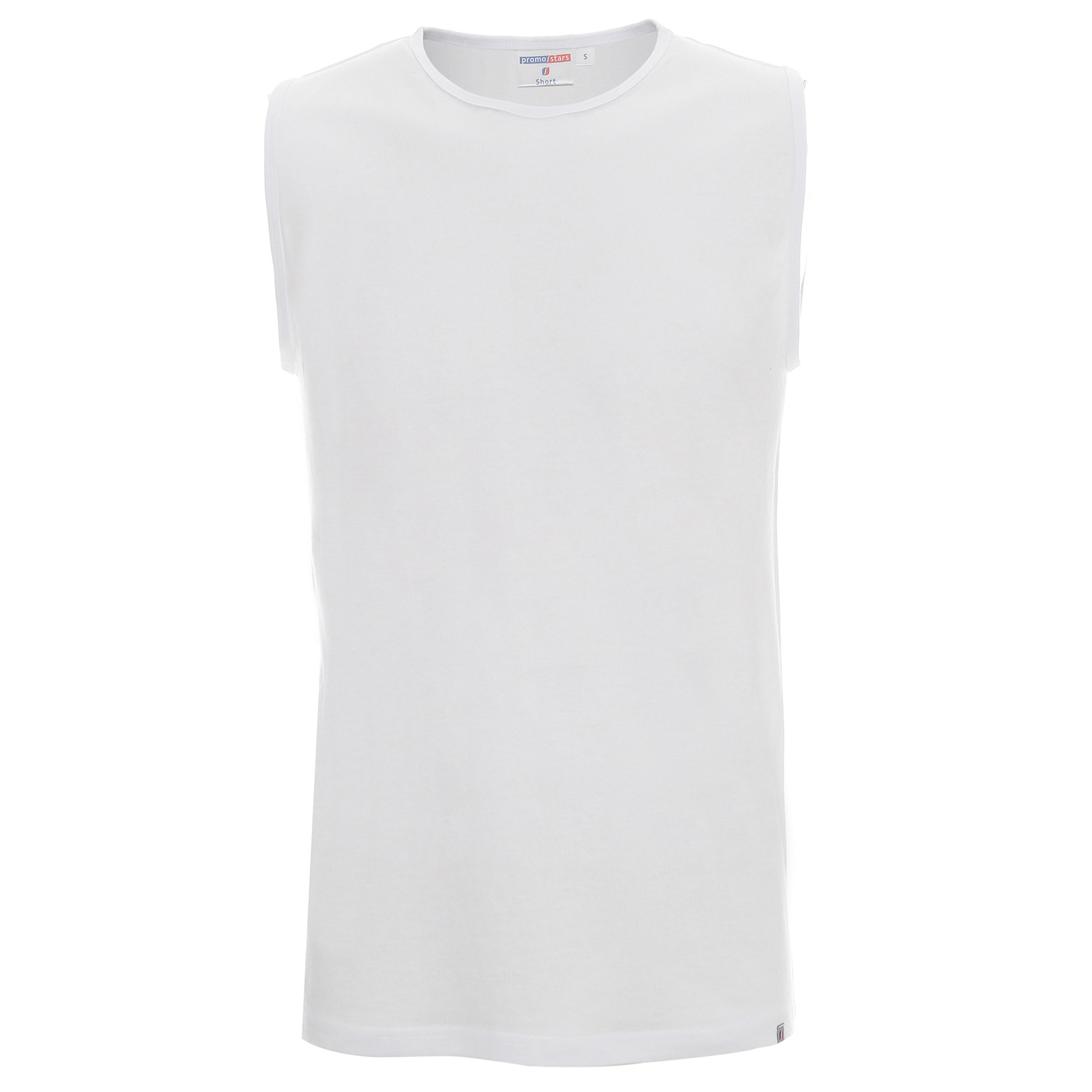 T-shirt męski bez rękawów wykonany z dzianiny single jersey.