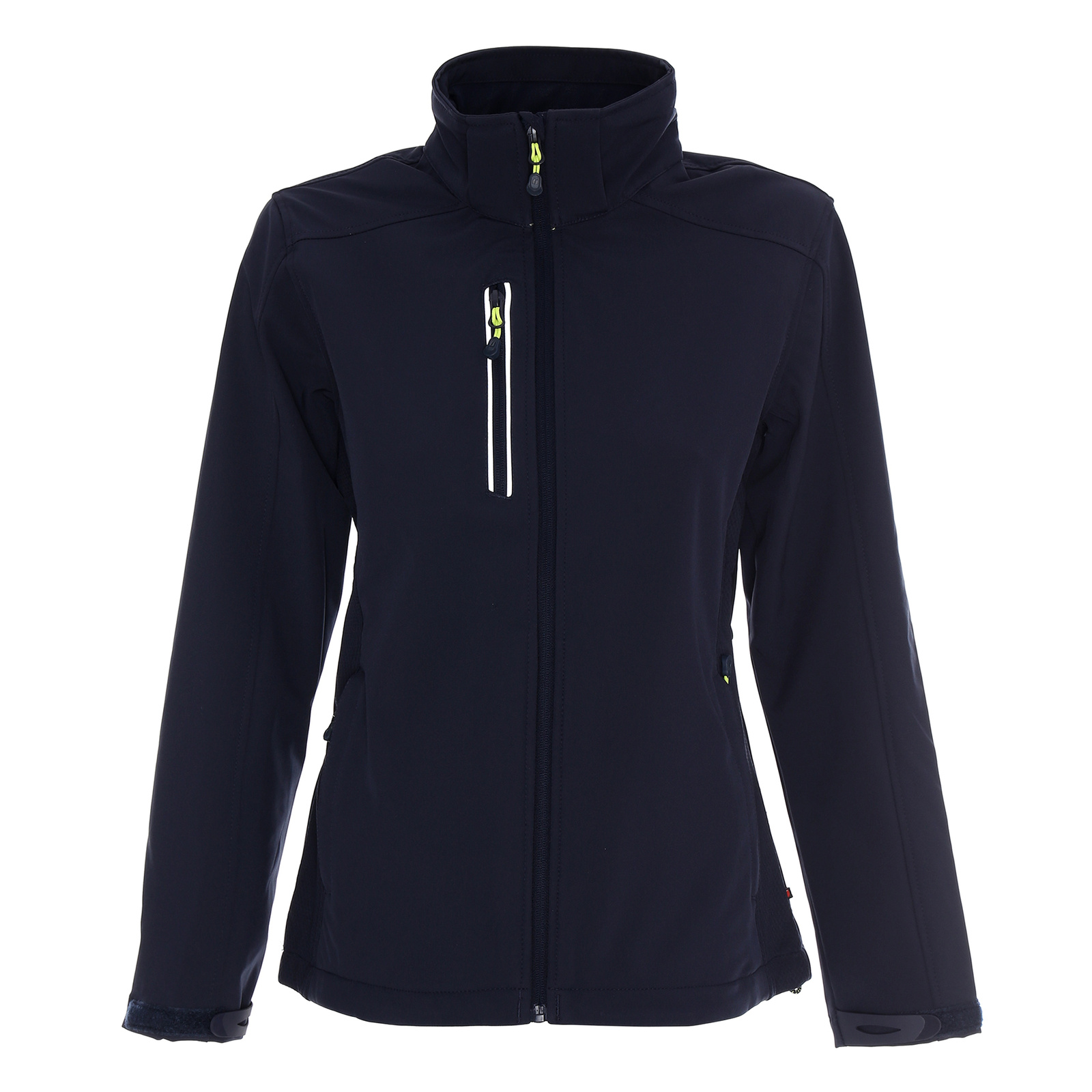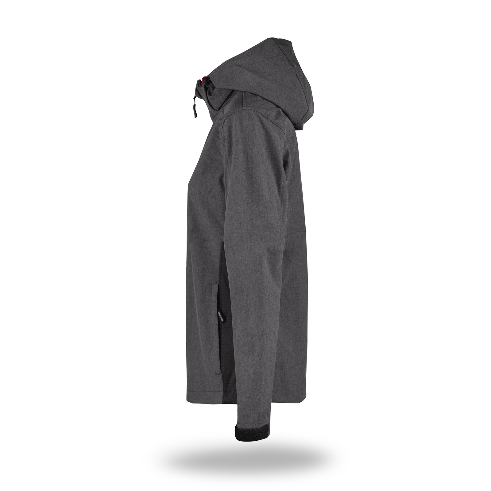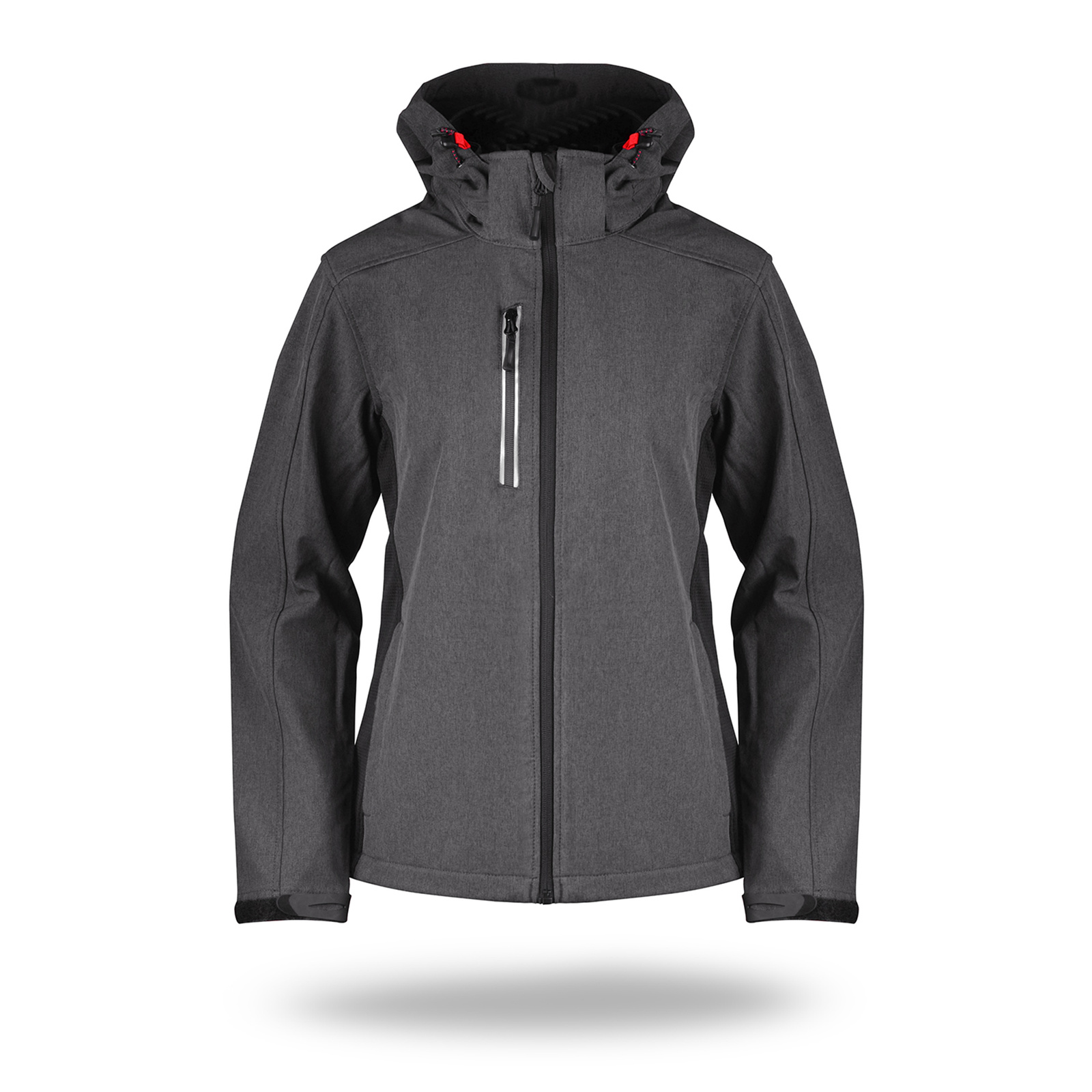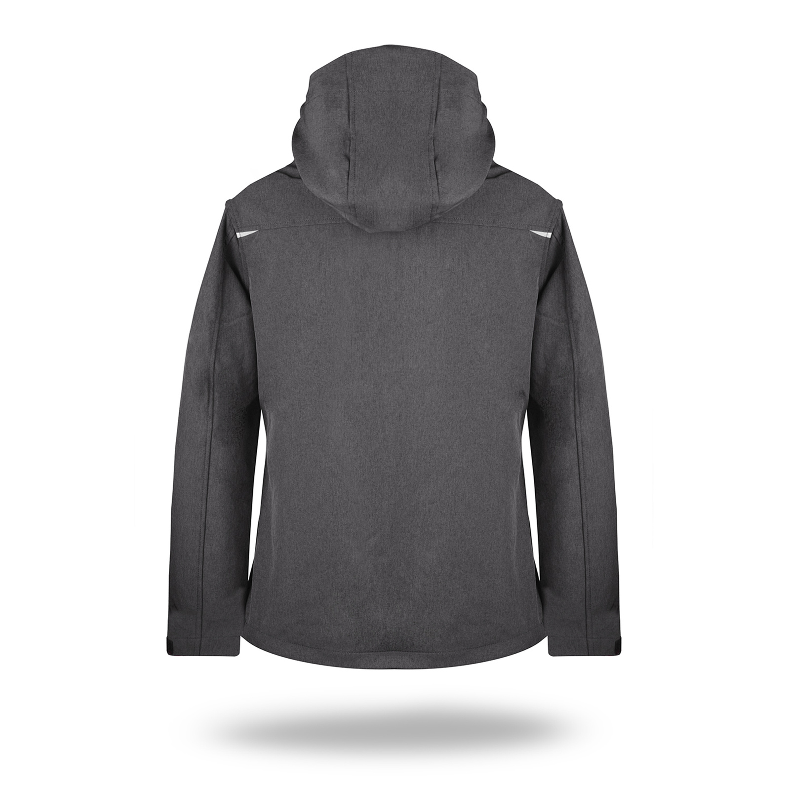 Materiał typu softshell. Pionowe cięcia modelujące. Wydłużony tył. Kołnierz ze stójką. Odpinany kaptur. System ściągaczy w regulacji kaptura i u dołu wewnątrz. Gumka w regulacji w kontrastowym kolorze. Mankiety z regulacją na rzep. Zamek główny oraz zamki kieszeni nylonowe. Markowe zamki YKK. Dekoracyjne przeszycia. Elementy odblaskowe z przodu i z tyłu. Wodoodporność: 8000 mm słupa wody, oddychalność: 5000 g/m2/24h.