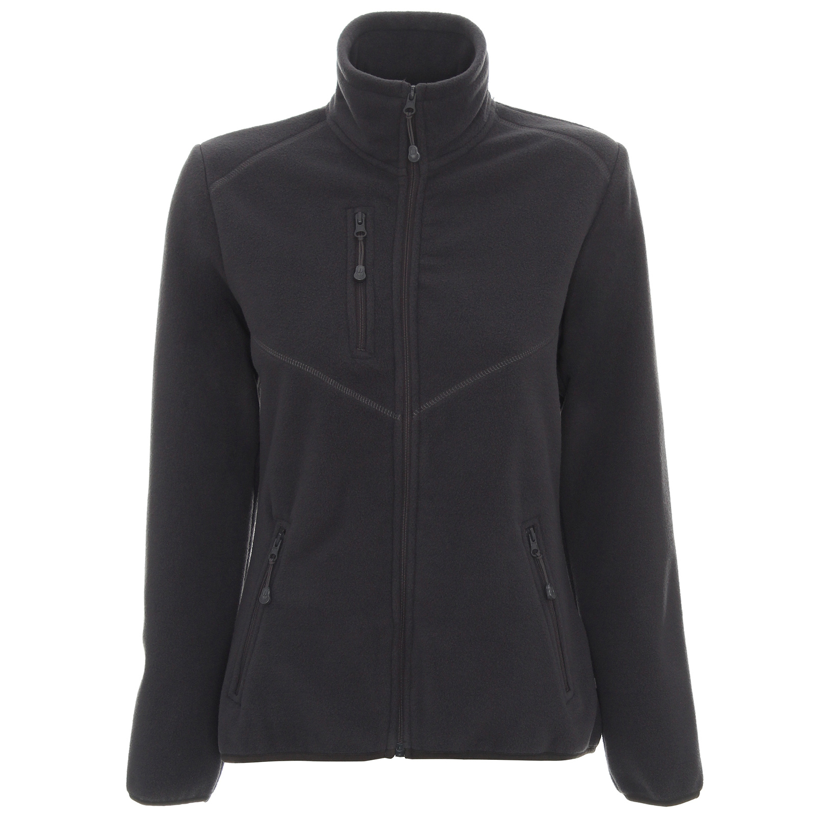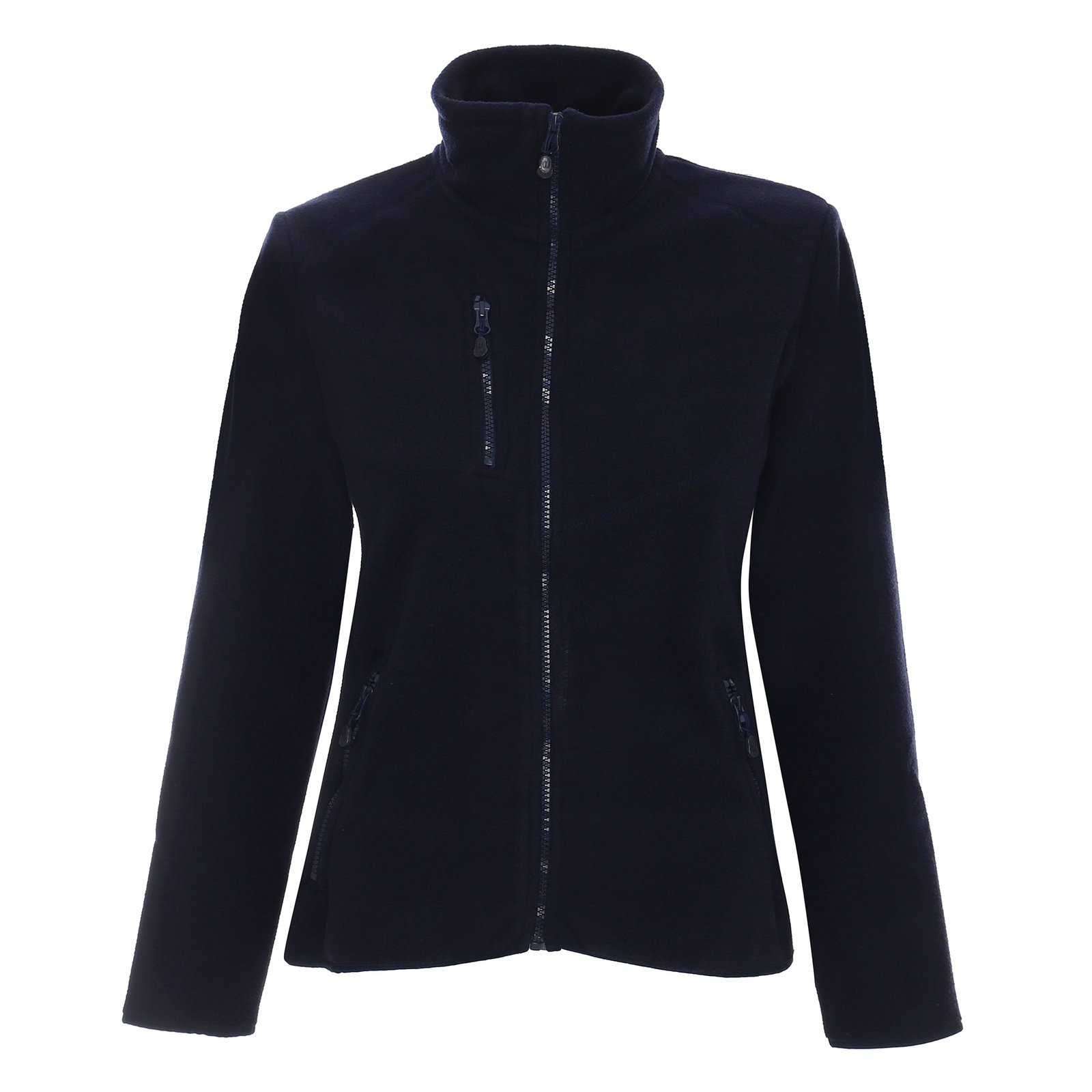 Taliowany fason. Dekoracyjne przeszycia. Zamek główny oraz kieszeni kostkowy, plastikowy. Zamykana kieszeń na piersi. System ściągaczy u dołu wewnątrz. Dół oraz mankiety zakończone elastyczną lamówką. Obustronne wykończenie antypillingowe materiału zapobiegające mechaceniu się.